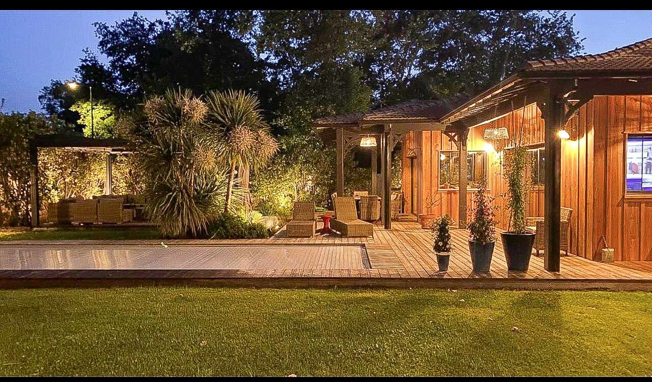 **Cette superbe maison est composée au rez de chaussée de: - un vaste séjour cuisine avec plafond rampant et poutres apparentes, très lumineux avec accès direct à la terrasse aménagée et à la piscine; le chauffage est au sol avec pompe à chaleur. - 2 chambres climatisées avec dressing et salle de douche - 1 bureau de 11 m² pouvant servir de troisième chambre - une buanderie - un garage A l'étage vous disposez de deux chambres climatisées (climatisation réversible) dont une suite parentale de 18m² avec balcon vue piscine et une salle de douche. **Le lodge de 40m² est une construction en bois entièrement clôturé, il est composé d'une chambre avec salle de douche, le plafond est rampant et les poutres apparentes; d'un salon cuisine avec larges ouvertures donnant sur un jardin aménagé, d'une terrasse bois, et d'un sauna.